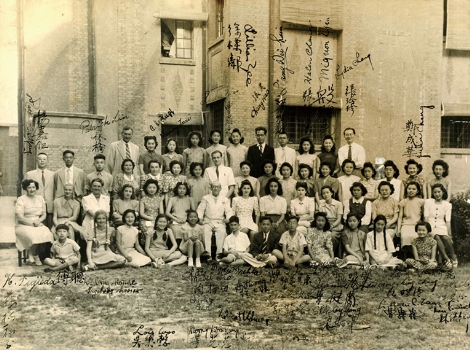 1945年,意大利钢琴家梅百器和中国学生合影,二排左五吴乐懿、一排左三周广仁、一排右一巫漪丽皆为宁波籍
