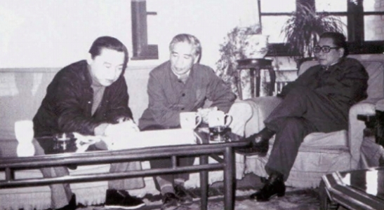 从左至右分别为傅聪、吴祖强、朱工一(1980年摄)