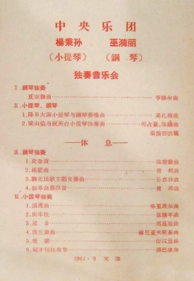 1961年巫漪丽和丈夫杨秉孙在天津的合作演奏会曲目单