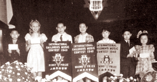 1940年,13岁的柳和埙(左一)参加少年国际音乐比赛荣获一等奖