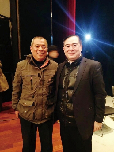 2015年12月22日上午,“宁交”历史性的第一次排练之前,笔者(左)与俞峰合影