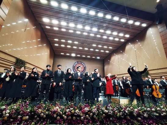 演出结束,俞潞感谢宁波交响乐团全体成员