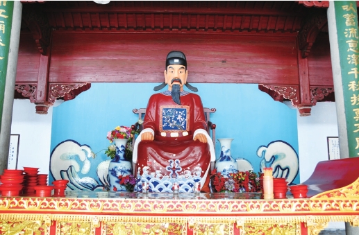 至今,祭祀王元暐的“它山遗德庙”尚在。进得门来就可见到戏台一座;戏台后为大殿,殿中塑王元神像,神阁上方置匾两块,一为“远绩禹功”,一为“它山名官”。从匾上所书内容可知,当地百姓以及后人对王元