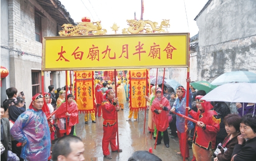 太白庙庙会属于春祈秋报的形式。正月的灯会是祈求庙神在一年中保佑全村百姓人寿年丰,吉祥如意。而迎神赛会则是为酬谢庙神的保佑而举办的。农历九月半庙会在秋收之后,是人们庆贺好收成的自娱自乐性质的活动。这次庙会时间较长。从九月初一日开挂首会,出虎头榜,直到迎赛结束,长达十七天。其中庙会活动占四天,庙会期间几乎天天都演戏。戏班子都从宁波城里的著名戏班中挑选,据有关资料记载,当时在宁波城里,有名的京剧班子有“老大鸿寿”“大连升”“五月记”等。十四日清晨三点,给庙神沐浴更衣后,于大殿落座,接着就演戏敬神;十五日继续演戏,十六日二迁台基演爵献戏;下午在徐家祠堂,晚上又转移至王家祠堂;十七日又在太白庙内演安神戏。这样连演四天的戏,让村民们过足了瘾。