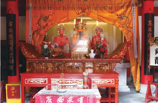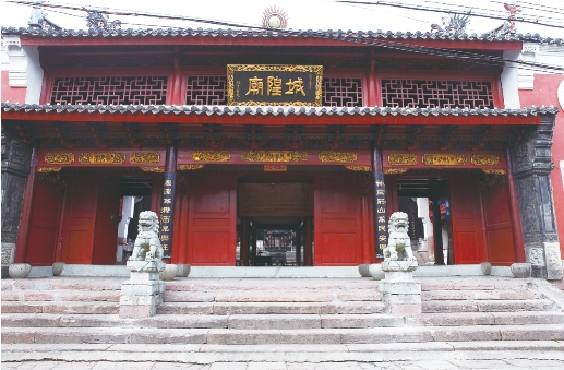 六月六庙会头一件事是请神落地。五月三十日那天,当值柱头先要给城隍菩萨和戚老爷(戚继光)擦脸,换上新袍、新帽、新皂靴,然后将他们请下殿来,接着供奉,并请看戏,这一系列工作就叫作菩萨“落地”。在这一天,石浦周围四邻八乡的妇女儿童都要来庙里“护寿”。这天晚上开始演庙戏,要一连演十天,直到六月初十结束。