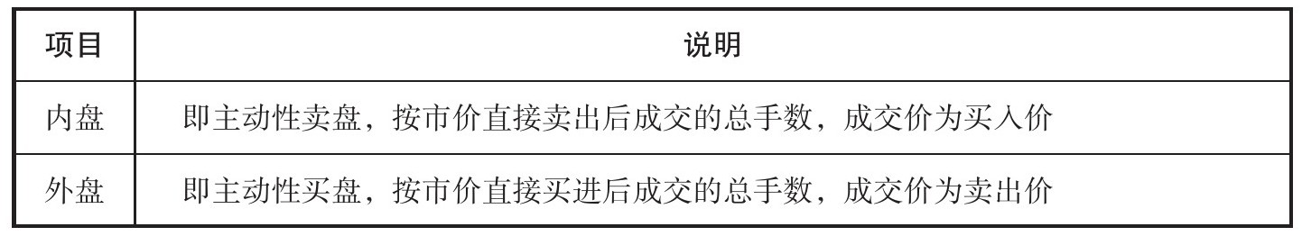 表1-2 成交价格、成交量以及内外盘注释表