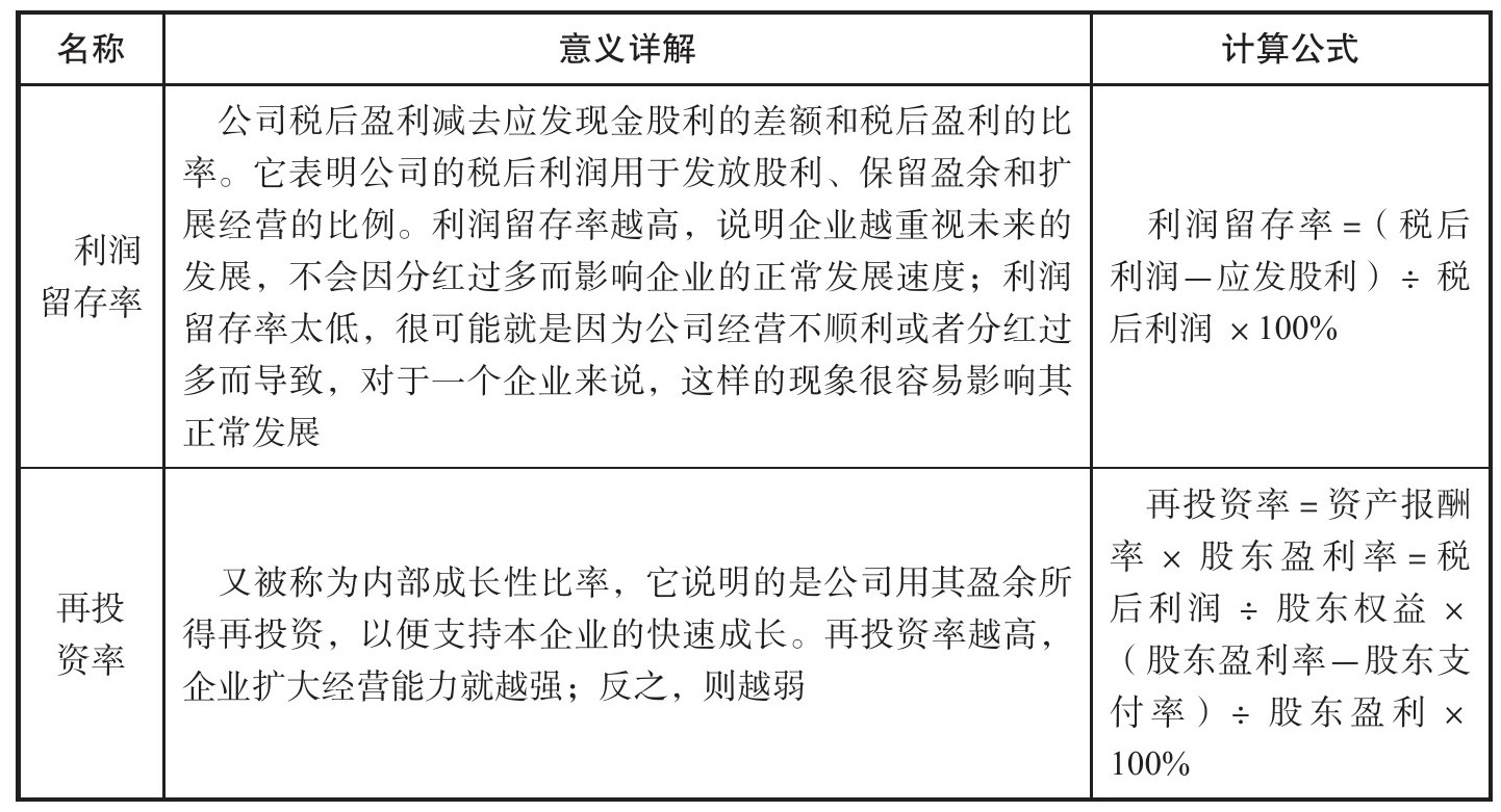 在成长比率中有两个最为重要的部分,分别是利润留存率和再投资率。为了方便股民朋友理解,特制成表3-1供参考: