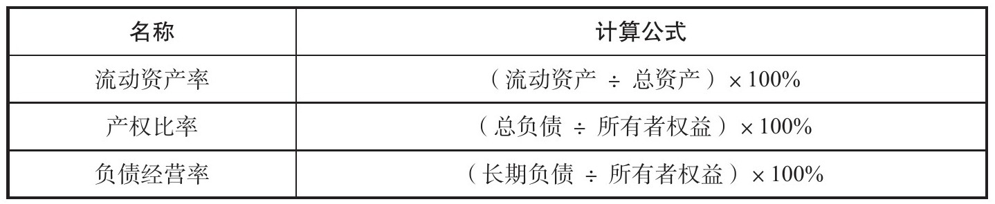 分析企业资产结构的合理性需要依据三个指标,分别为:流动资产率、产权比率、负债经营率(表3-2)。