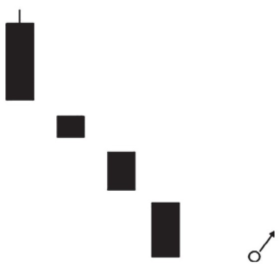 这种形态一般出现在下跌行情中,它往往表示股票价格已经见底。对于冒险型投资者来说,这是一种强烈的买进信号。在后面的走势中,股价及时地收出了一根至两根阳线回补下跌的第三个缺口,代表多方已经蓄势待发,股价上涨有极大的可能性。稳健型的投资者可以在此时跟进(图5-17)。