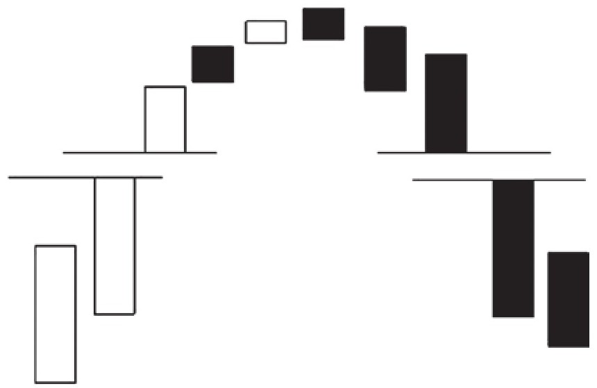 这种形态通常出现在中长期趋势的顶部,它的出现表示趋势的逆转。