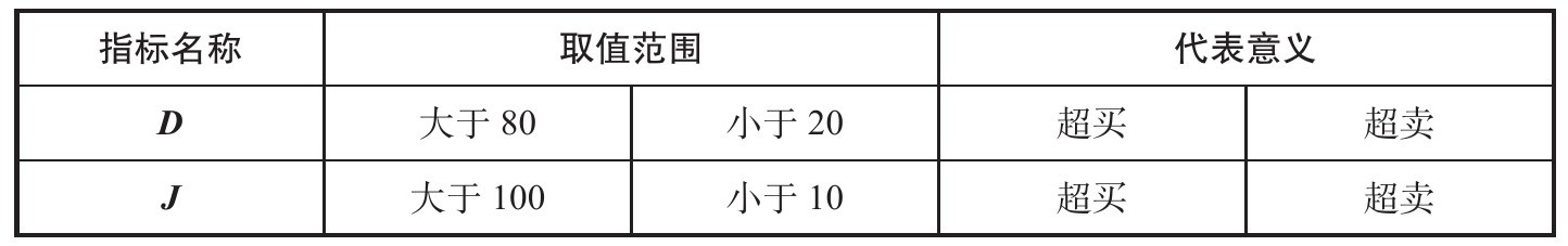 KDJ指标中K值、D值和J值在坐标上形成一个点,当无数个这样的点连接起来,便会形成一个完整的能够准确反映价格波动趋势的技术指标。投资者要想熟练运用KDJ指标需要牢记各个值代表的含义,见表7-1。