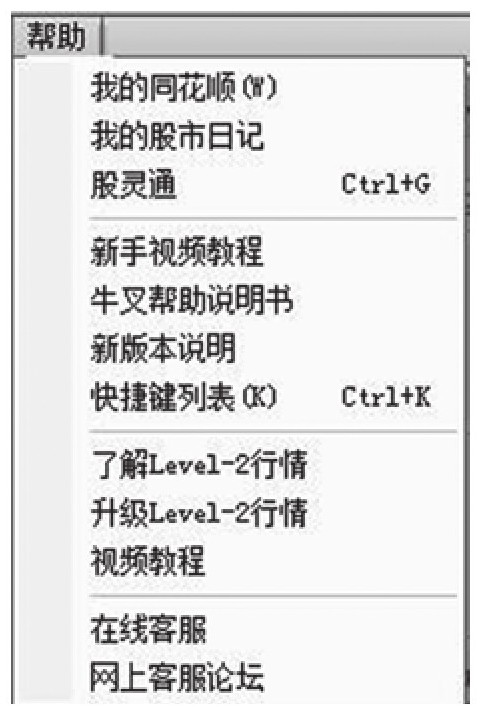 如果你对“同花顺”股票软件或者对其操作有什么疑问,可以通过点击帮助,去寻获相应的解答(图9-9)。