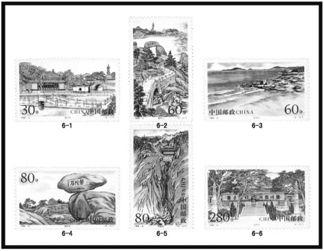 邮票规格:(6-1、6-3、6-4、6-6)50 mm×30 mm;(6-2、6-5)30mm×50mm