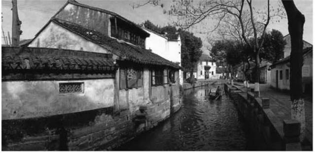 图6-5【吴县甪直】甪直是一个具有浓厚水乡风情的古镇,位于江苏昆山市,为江南六个著名古镇之一。古镇建于503年,距今已有2500多年的历史,素有江南“桥都”的美誉。镇内河网交错,碧水环绕,桥桥相望。
