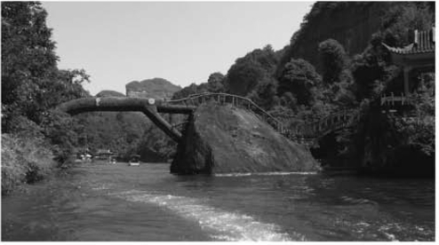 丹霞山坐落于广东仁化县城南约九千米处,被誉为“岭南第一奇山”。丹霞山均为红色砂砾岩,远眺全山,“色如渥丹,灿若明霞”,因而又有人称之为“红石花园”。其地质岩层是由碎屑红岩,砾石岩和粉状沙岩受到长期水流冲刷以及风化而形成的奇特地形,是砂岩地势的代表,在地理学上称为“丹霞地貌”。在世界上,丹霞地貌主要分布在中国、美国西部、中欧和澳大利亚等地,又以我国丹霞山面积最大、发育最典型、类型最齐全、形态最丰富、风景最优美。丹霞山主峰海拔只有409米,但它集黄山之奇、华山之险、桂林之秀于一身,具有“一险、二奇、三美”的特点。1988年丹霞山被定为国家重点风景名胜区,1995年被确定为国家自然保护区。丹霞山风景区内群峰如林,古木葱郁,淡雅清静,锦江秀水纵贯南北。邮票主图分别为风景区内的僧帽峰、翔龙湖、茶壶峰和锦江。