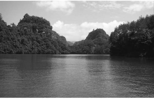 图2-2【猫儿山】猫儿山屹立在金湖情侣峰的背面,又名“猫兽石”,由三个巨大的剑石叠合而成,高耸入云。游客乘舟,在数千米外即可望见一只昂首曲背蹲坐凝视大湖的“大猫”倒影映入湖中,宛如一幅名家笔下的《狸猫图》。