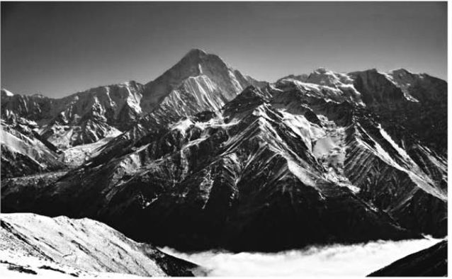 图2-1【贡嘎山】贡嘎山位于甘孜藏族自治州泸定、康定、九龙三县交界处,主峰7556米,是四川省的最高峰,被誉为蜀中“群山之王”。主峰及姊妹峰终年素裹银装,周围林立着145座海拔五六千米的冰峰,群峰耸立、雪山相连,气象万千。以贡嘎山为中心,由海螺沟、木格错、五须海、贡嘎南坡等组成面积一万平方千米的国家级风景名胜区。区内有贡嘎寺、塔公寺等藏传佛教寺庙,可领略到少数民族丰富多彩的民族风情。