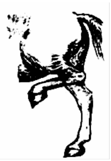 (2)悬跛(运跛、扬跛)。患肢的提举和伸扬出现机能障碍,称为悬跛(图10.3)。其特征是患肢提举伸扬不充分(抬不高、迈不远),患肢前进运动时,在步伐的速度上和健肢比较常常是缓慢的。两肢腕跗关节抬举的高度,患肢常常是比较低下,该肢常拖拉前进。患肢“抬不高”和“迈不远”,所以以健蹄蹄印量患肢的一步时,出现前半步短缩,临床上称为前方短步。前方短步,运步缓慢,抬腿困难是临床上确定悬跛的表现。