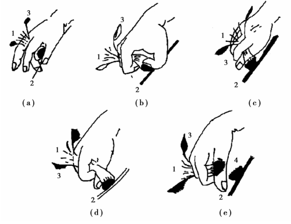 (a)~(e)示胎衣剥离术式的顺序