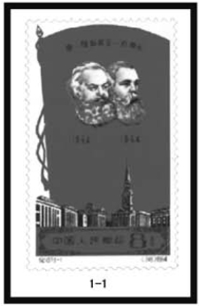 1-1(348)马克思和恩格斯像、红旗、伦敦圣马丁堂外景 8分 500万枚