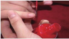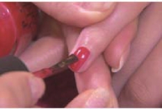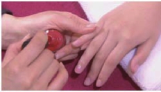 在涂抹甲油工作中,涂抹和去除甲油是整个操作的关键技术。由于人的指甲不都是标准的形状,必须根据不同的甲油种类以及不同的指甲形状,采用适当的手法进行涂抹。