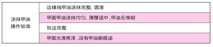 (1)涂抹甲油操作标准(见表1-2-3)