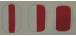 注意:为了保障涂抹效果,需根据不同性质的甲油采用不同的按压力度和角度。