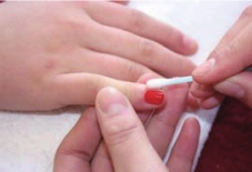 注意:如果涂抹不当,应立即去除甲油,重新涂抹。