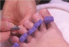 按照指皮修剪的方法完成左足趾皮修剪工作。