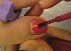 将营养油涂抹在趾甲后缘和侧缘的趾皮上并用拇指指腹轻轻按摩。