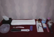 按照甲形修整的方法完成左足趾甲修形工作并除尘。