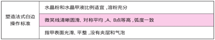 (1)塑造法式白边操作标准(见表4-2-2)
