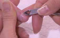 使用180 # 磨锉在指甲表面轻轻刻划出细小划痕,以增大黏合接触面积。