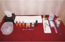 用粉尘刷将指甲表面和甲沟内的粉尘清除干净,去除指甲表面光滑的油脂层,并将清洁剂涂抹在甲面上。