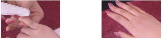 卸除指托板后,用180# 磨锉修整指甲形状。
