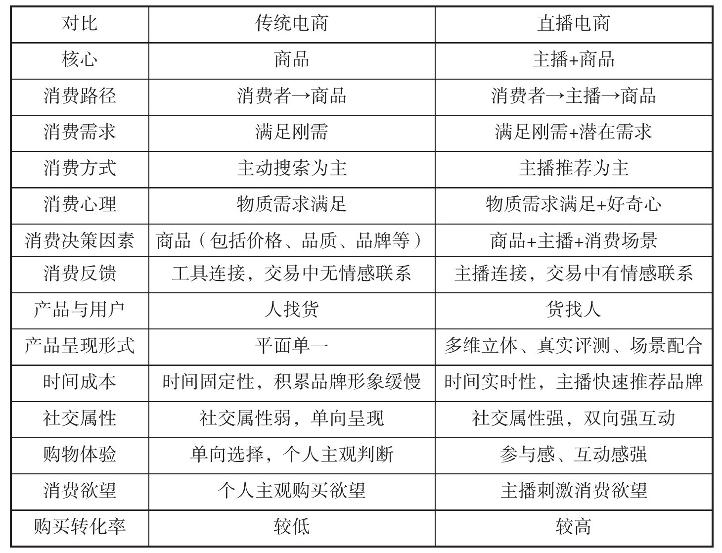 表1-1 直播电商与传统电商优势对比