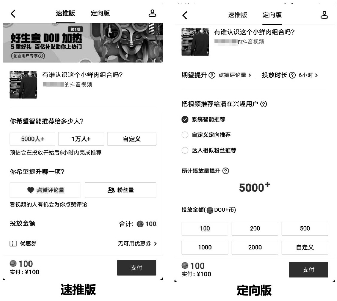 图6-3 抖音“DOU+”作品投放的两种方式