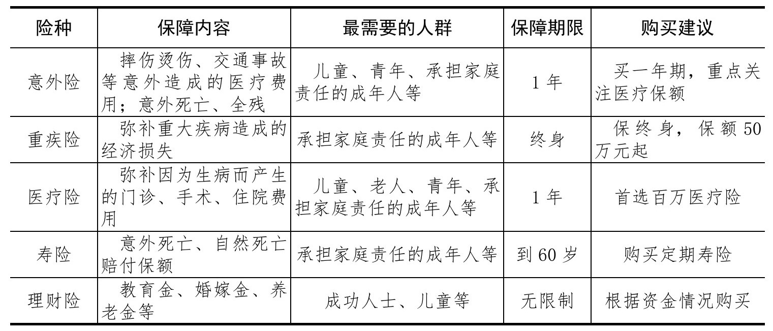 在琢磨哪些客户是你的目标之前,还要搞清楚不同的人群适合购买什么种类的保险。具体内容如下表所示: