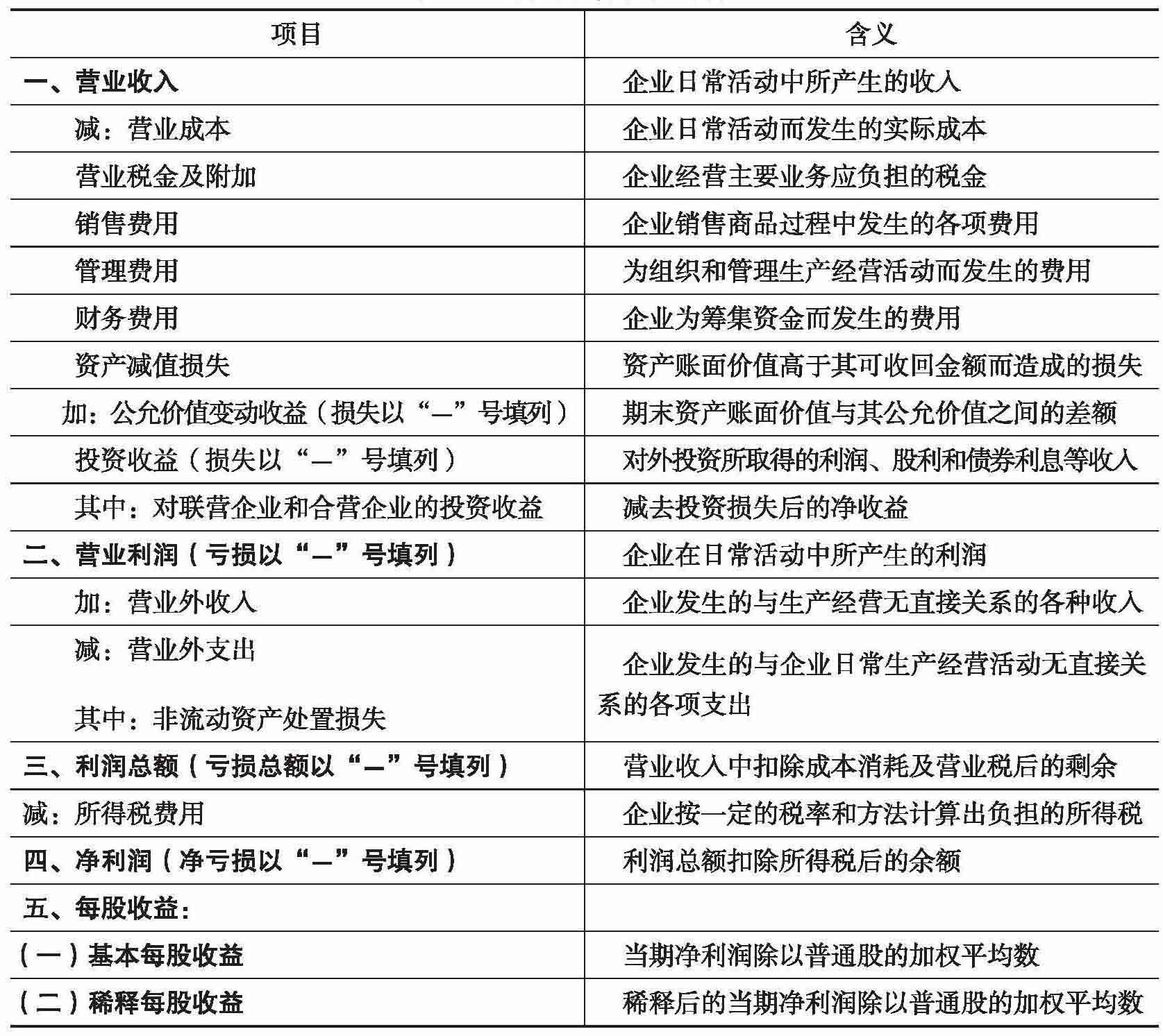 利润表各项目的含义