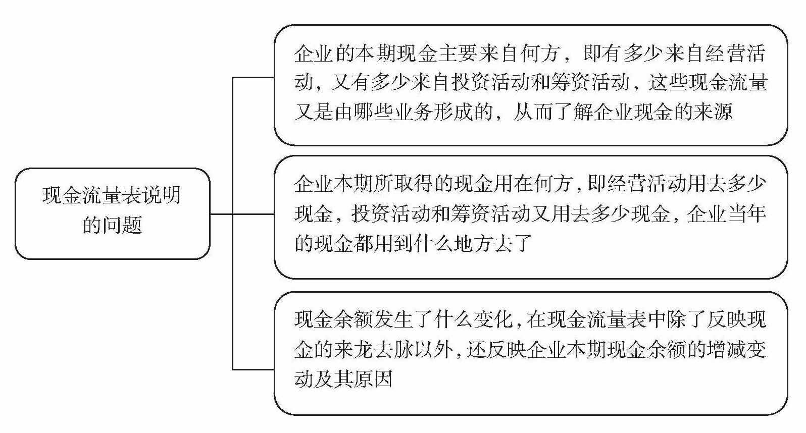 从上述内容来看,现金流量表主要说明了三方面的问题:
