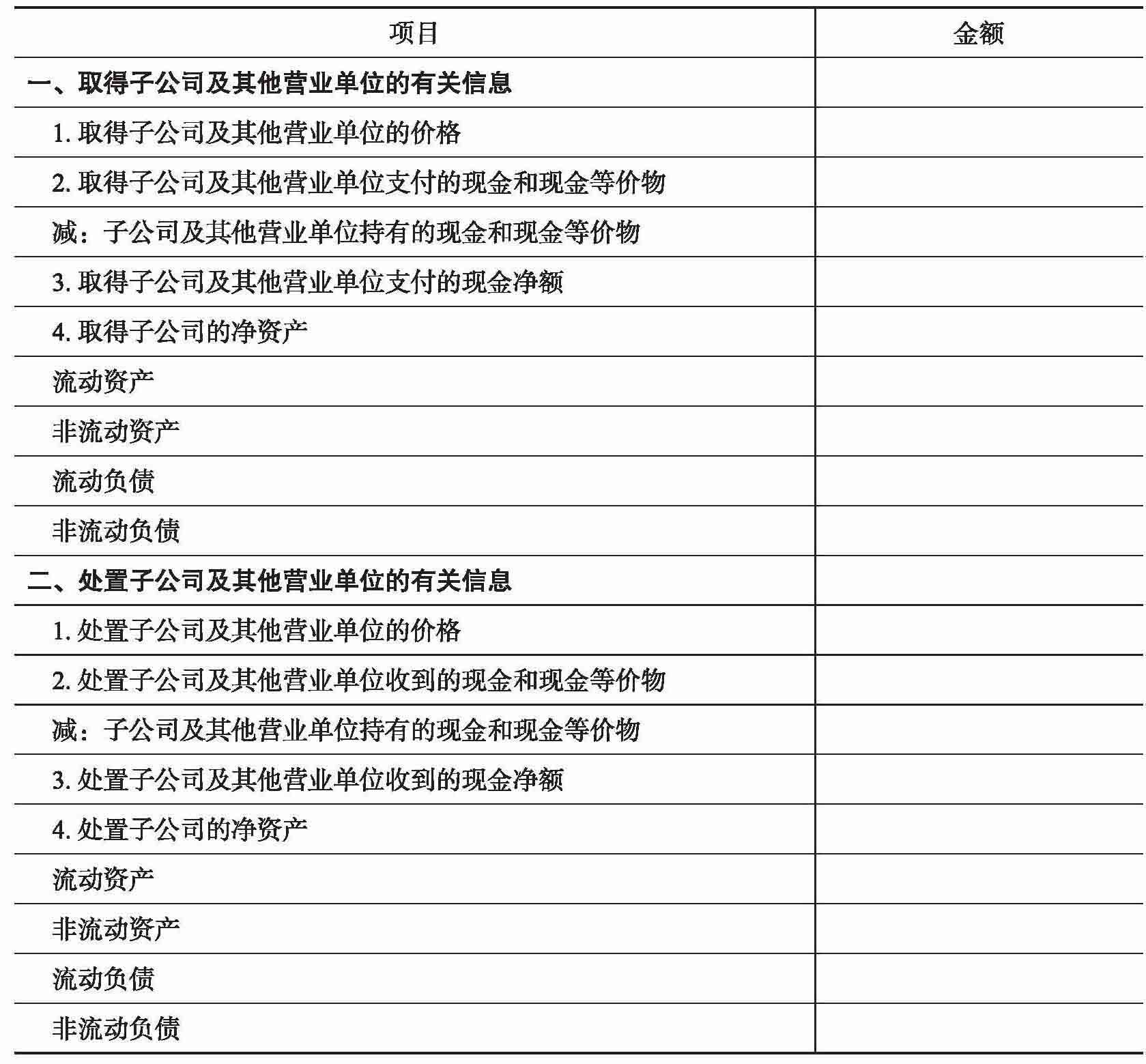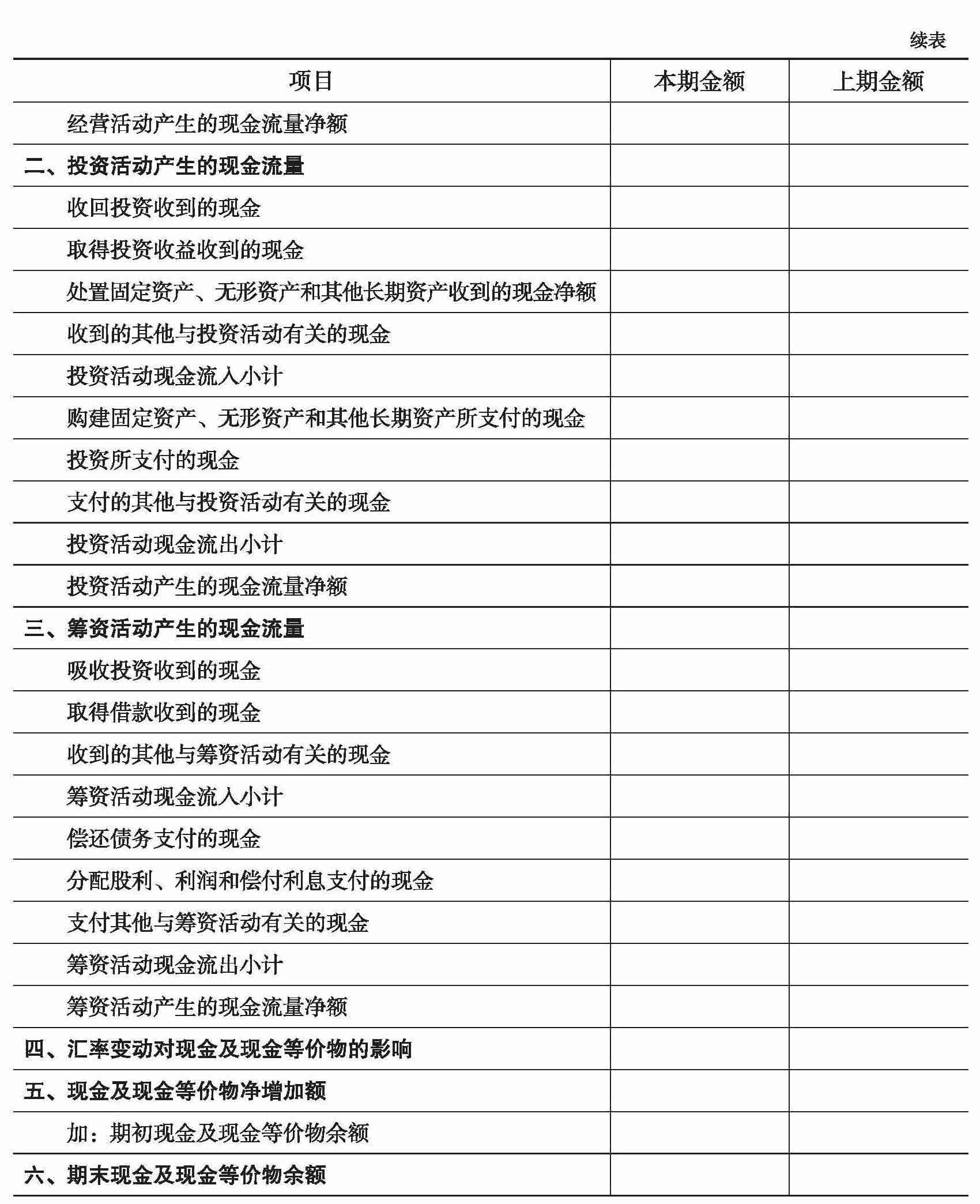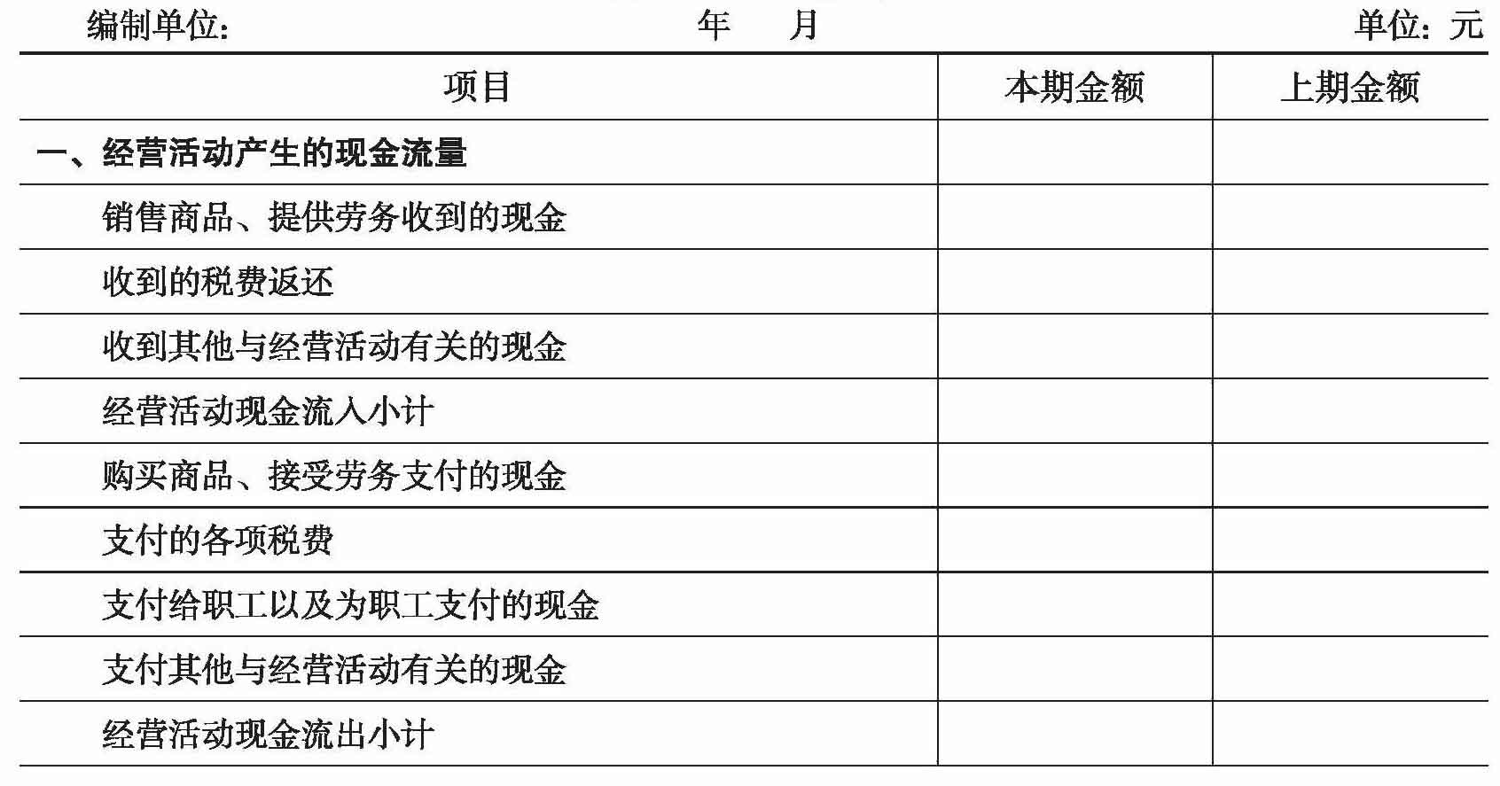 现金流量表分为两个部分,第一部分为正表,第二部分为补充资料,具体结构如下。