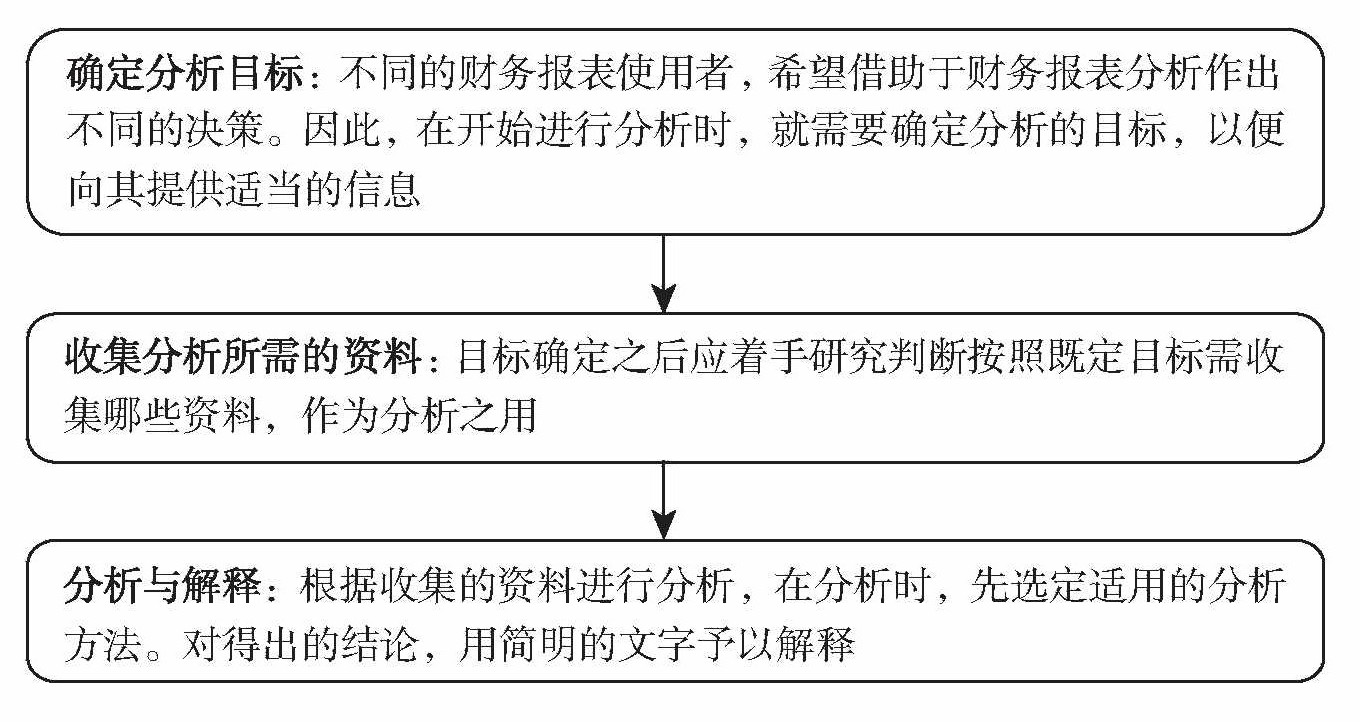 企业开展财务报表分析时,应按一定的程序进行,否则会出现重复或遗漏。财务报表分析的步骤一般分为三步: