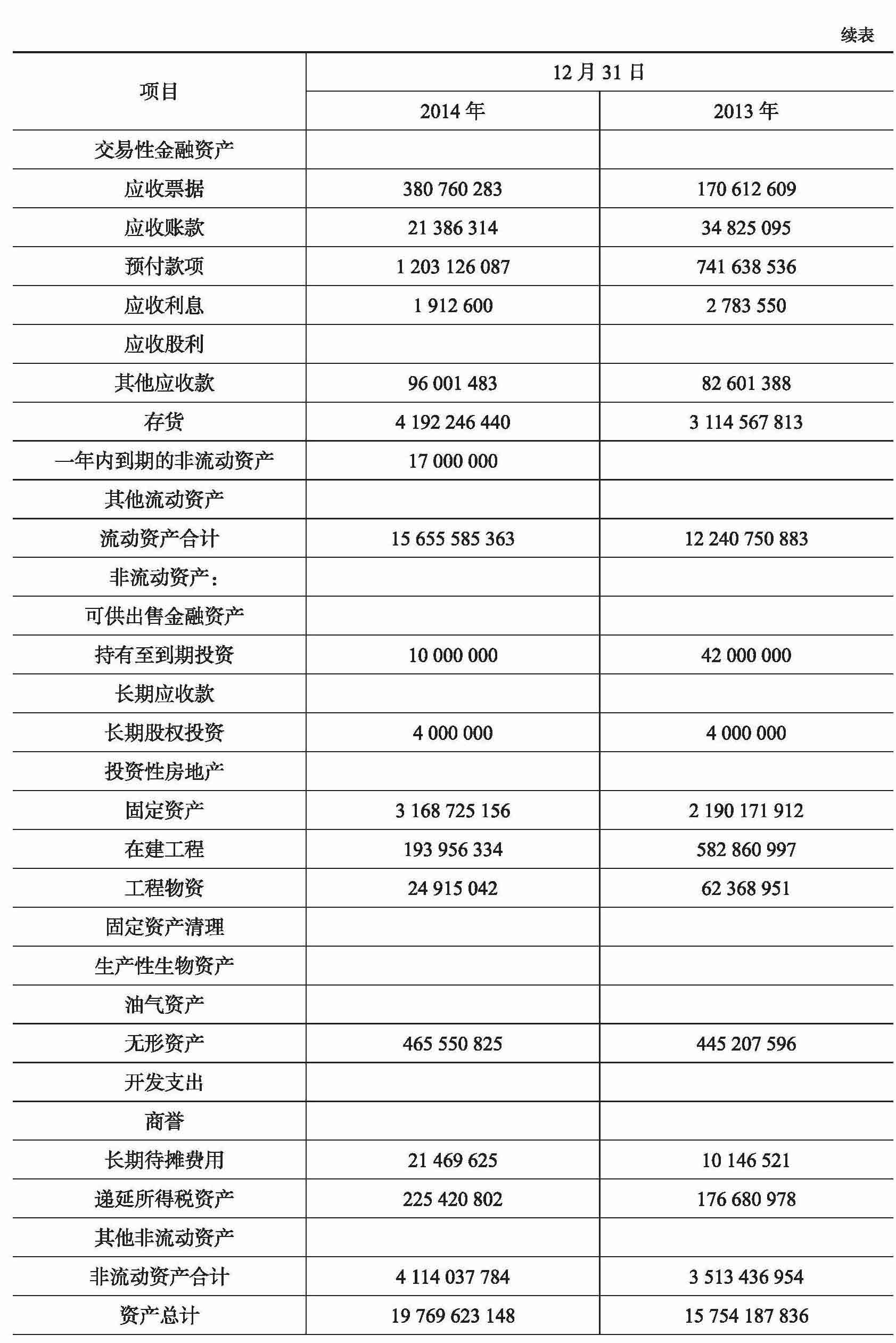 根据资产负债表可知,该集团公司2014年年末的资产总额为197.70亿元,较2014年年初资产总额157.5亿元增长了25.52%,负债规模2014年年末较年初增长了20%,所有者权益2014年年末较年初增长了25.44%。在所有者权益中,实收资本和资本公积本年度并没有发生变化,所以所有者权益的增长额都是由企业留存收益所贡献的。由此可以看出,该集团公司2014年度盈利状况良好,处于正常经营中。