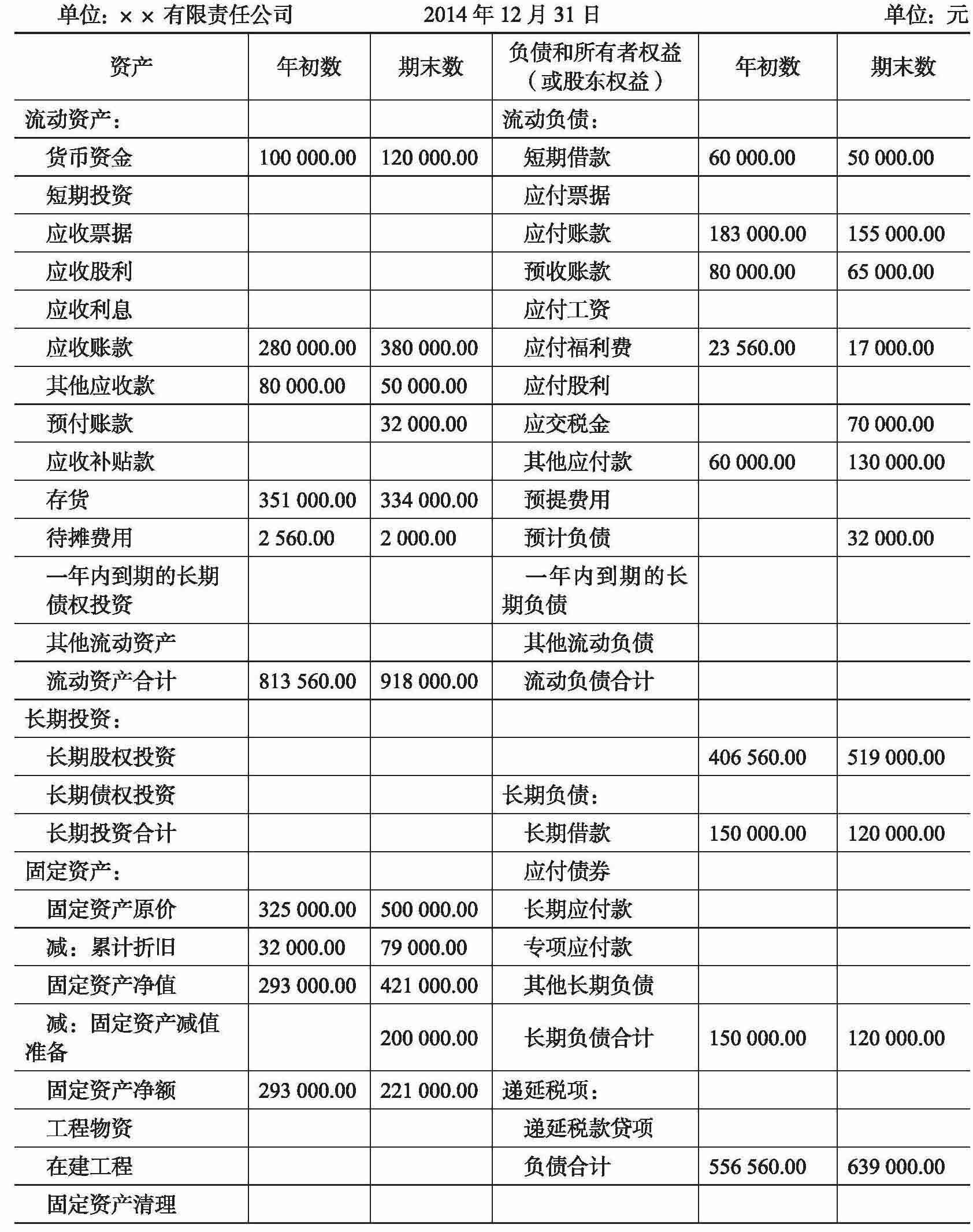 某公司2014年度的资产负债表见表8-1,我们据此来对资产负债表中各项目进行分析,以帮助报表使用者充分理解各个项目中“潜伏”的企业信息。