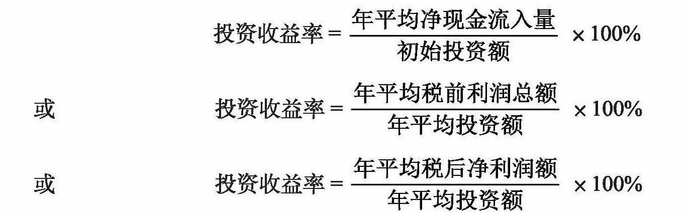 投资收益率在计算上可以有不同的口径,如可以按全部投资额来计算,也可以按年度平均投资额来计算;报酬额可以按净现金流入量来计算,也可以按该项投资税前收益或税后净收益来计算。在分析时注意口径一致,以利于对比和考察。