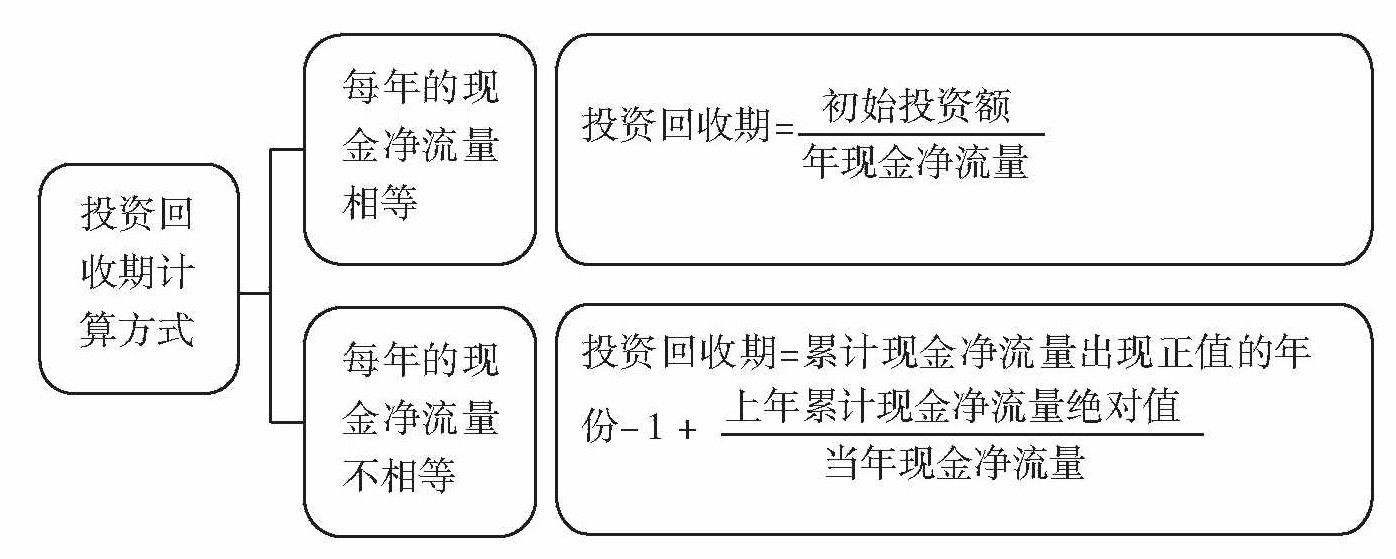 投资回收期是指通过项目的现金净流量来回收初始投资所需要的时间,一般以年为单位。投资回收期的计算,根据每年的经营现金净流量是否相等,可有两种不同的计算方式。