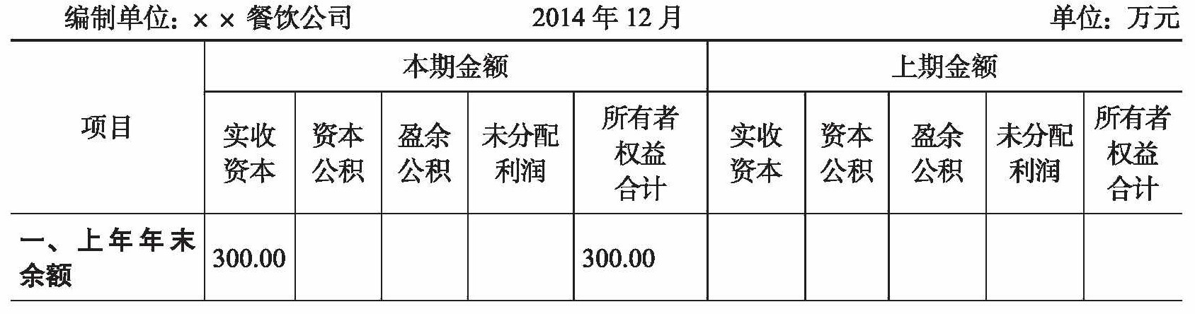 某餐饮公司2014年度所有者权益变动情况见表11-1,以此为例对所有者权益变动表的各项目进行简要分析。