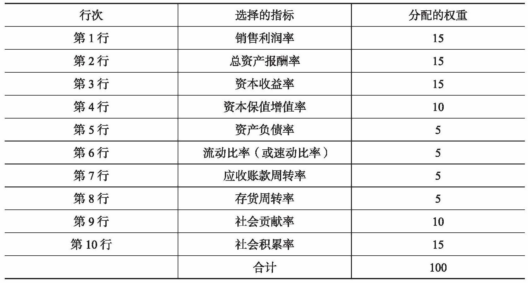 我国财政部于1995年发布《企业经济效益评价指标体系》,公布了销售利润率、总资产报酬率、资本收益率、资本保值增值率、资产负债率、流动比率(或速动比率)、应收账款周转率、存货周转率、社会贡献率、社会积累率10项指标,要求企业按照新的指标进行经济效益综合评价。该企业经济效益评价指标体系总和评分的一般方法及内容如下: