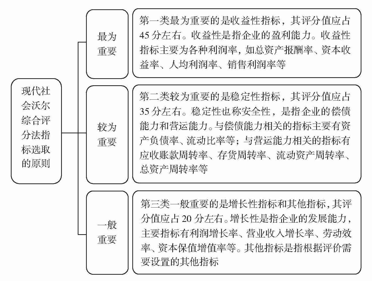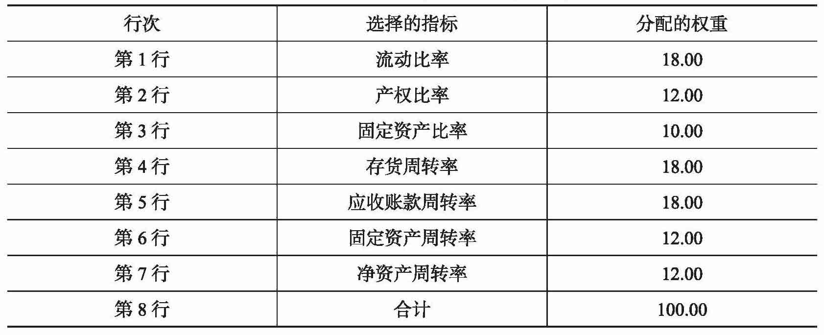 重要性权数是指一项指标的评分值,也称标准评分值,是由该项指标在沃尔指标体系中所占的重要性决定的。按其重要程度可分为最为重要、较为重要和一般重要三类,三类之间可按45:35:20的比重进行分配。