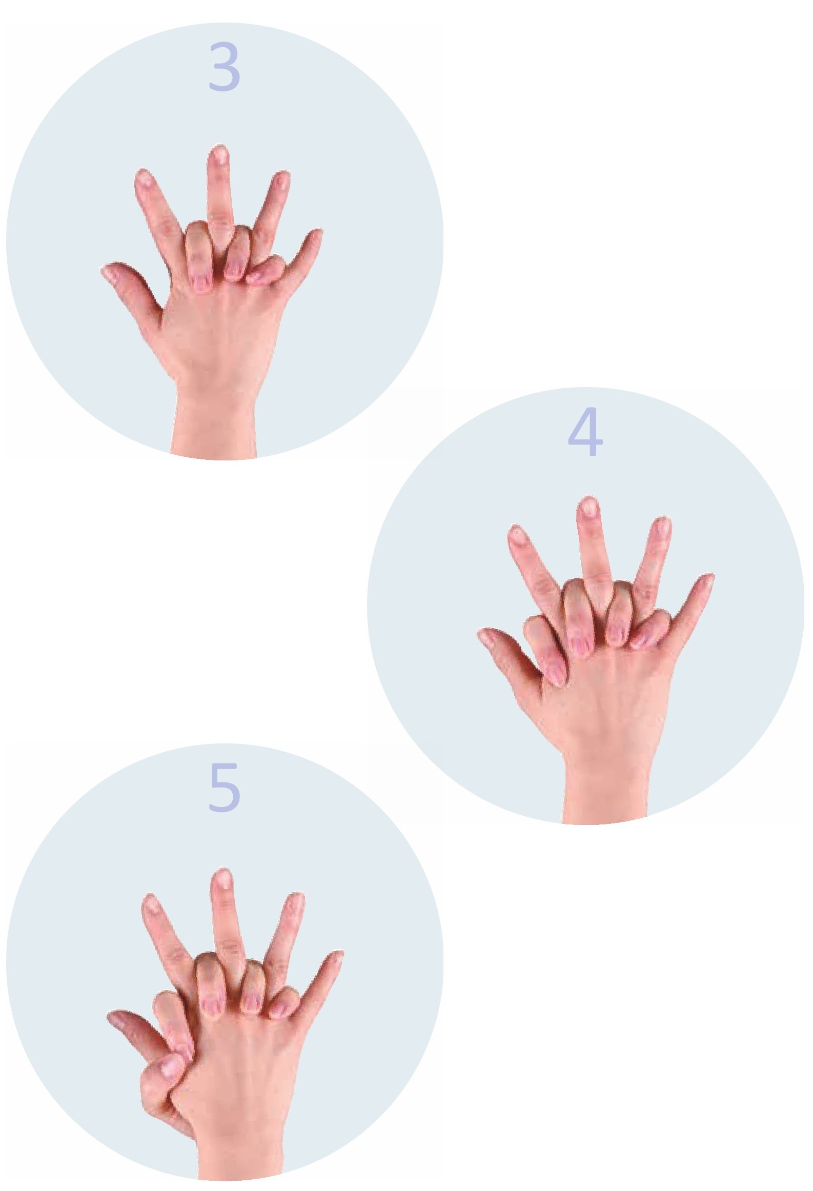 双手在胸前合并,掌心相贴,右手不动,左手从小指开始依次单指交错曲握,重复练习30次。